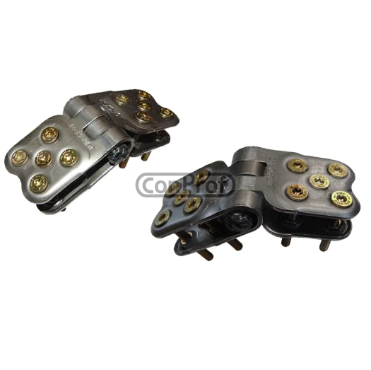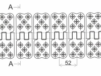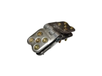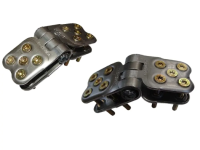 Замок состоит из шарнирных неразъемных сегментов с тремя винтами в каждом звене. Болт крепится при помощи гайки. Предварительно требуется сверление отверстий в ленте под болты.